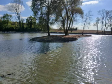 Création, terrassement et plantation d'un îlot au centre de l'étang. Cette zone préservée sur le site permettra de faciliter la reproduction de la faune.